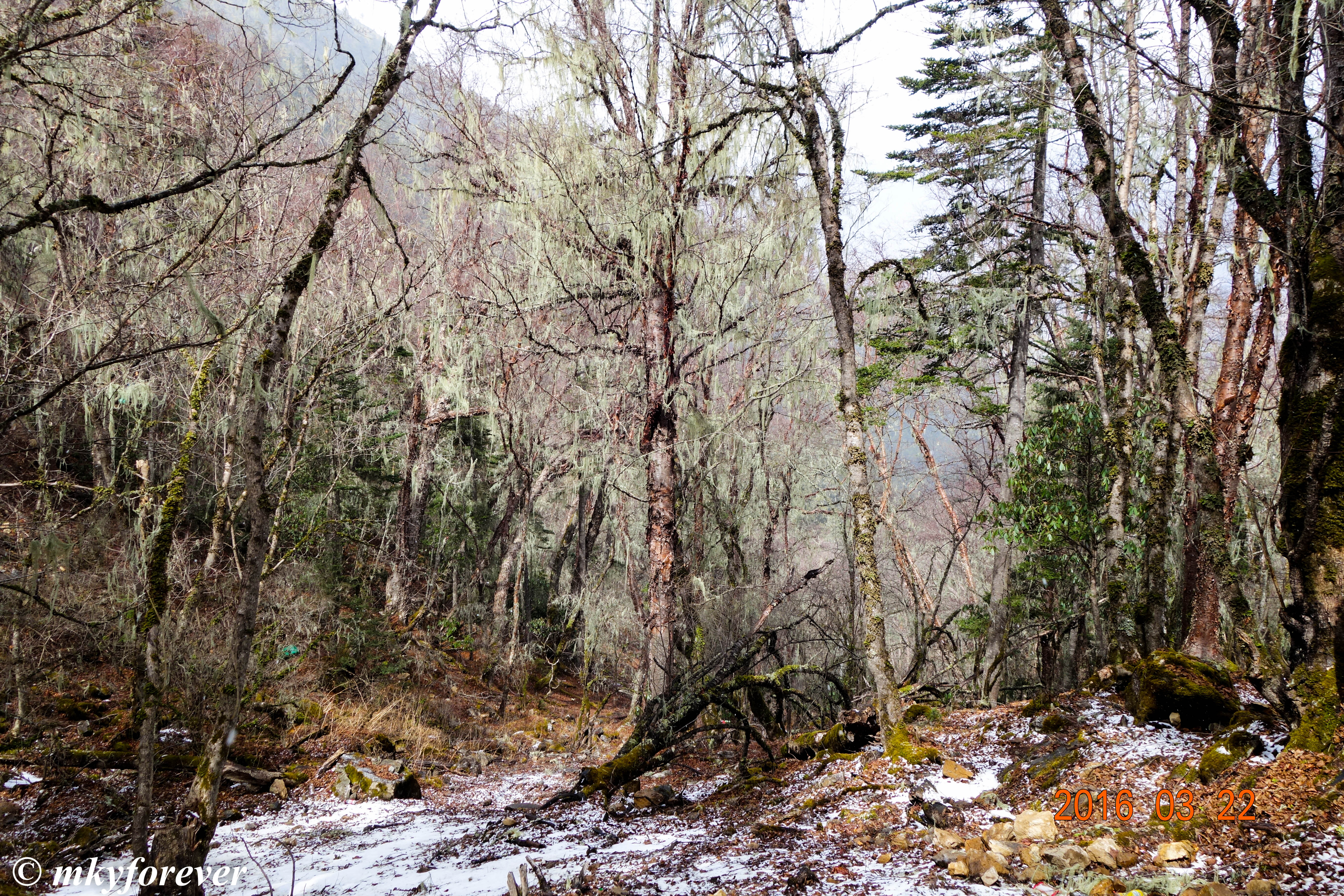 然而,路呢。。。没有路却处处是路。。。树木丛生,苔藓遍布,那一屡经幡是添加了生气还是衬托了萧瑟。。。